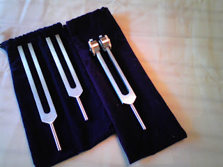 現在、音叉を使う場合 直接 骨の異常個所にあてて骨内の圧縮をリリースするのに使うときと キネシオロジーで心理的ストレスの原因を おこした年齢や、そのときの周りの人間関係などをしらべ 空中で音叉をならし音の振動でリリースするときがあります。